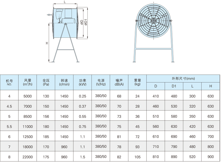 JGF-I为内转子电机直联传动,风量大、压力高、送风范围广,适用于工业车间生产现场、工程作业现场等有大面积送风换气要求的场所。